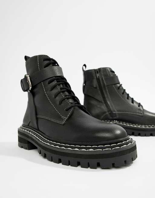 View Asos Design Reunion Premium Leather Platform Boots In Black UK